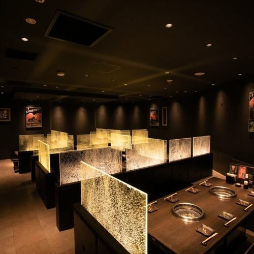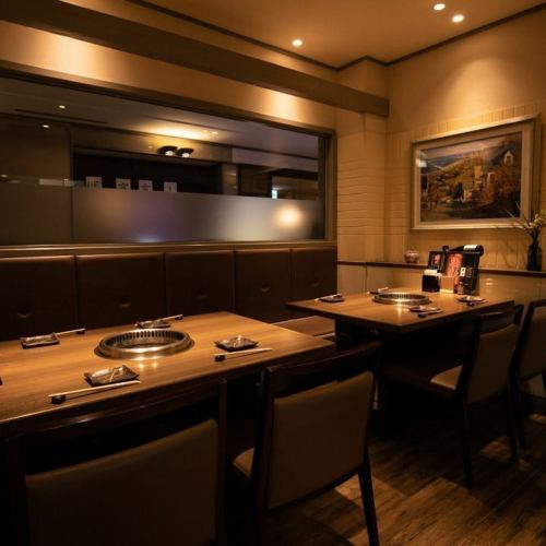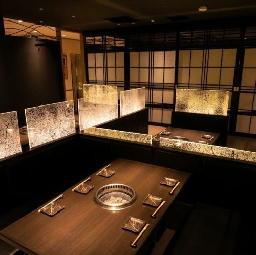 For 2 people or more◎ A sophisticated and relaxing space.The elegant atmosphere surrounded by champagne panels and the relaxing feeling of being able to stretch your legs coexist in this space.Please use the sunken kotatsu seats for banquets where you can enjoy delicious yakiniku.We can accommodate a wide range of occasions, from small parties of 2 people to medium-sized parties of up to 12 people.It is also ideal for year-end parties, business entertainment and dinners.